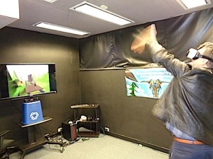 Last week I attended the Spring Showcase event hosted by USC Viterbi School of Engineering Professor Mike Zyda at the USC GamePipe Laboratory EGG-Building, where the culmination of more than a year’s worth of student teams’s collaboration, creativity and engineering is presented. This time I was particularly interested in augmented and virtual reality projects because these are hot topics in game design right now, USC has been in the forefront of virtual reality development (former GamePipe Lab instructor Laird Malamed is now Chief Operating Officer of Oculus VR, developers of the Oculus Rift VR headset) and I happen to be doing some consulting with a client in those areas.