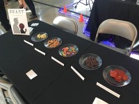 Maybe it was because I was famished, but the first game I gravitated toward was Feast, a storytelling/role-playing game for five players about power and memory, that’s played during a communal meal and uses eating and tasting as game mechanics. Players take on the role of entities (ghosts, aliens, parasitic fungi, whatever they wish) possessing and eating the personalities of ordinary people. Prior to the game, players each prepare one food item with one dominant taste (sweet, umami, salty, sour or bitter), to be shared among the others. Each round, players eat a morsel of food and describe a memory or thought that they consume from their host. The specific memory they eat is determined both by the dominant taste of the food they eat, and the round in the game. When all the food has been eaten, the players have subsumed their hosts’ personalities and the game is over.