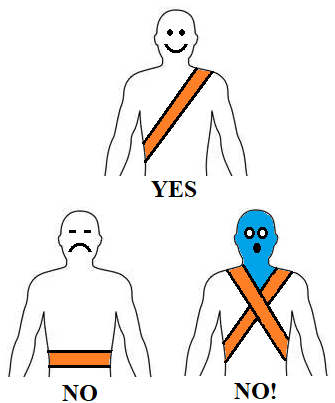 To the people in the waiting area, “How many of you are ready for the most exciting ride at Magic Mountain? Well, too, bad, you’re at Jammin’ Bumpers instead. (This always got a laugh). But I promise you a great time anyway. Before I let you onto the track, here are a few things you should know. If you have anything too large to fit in our pocket — backpacks, purses, souvenier bottles — please place them next to the fence around the track. They can’t go in the car with you. But if it does fit in your pocket, it must stay in your pocket. Use of phones and cameras are not permitted on any Six Flags attraction. Once you get into your car, you’ll find two safety strap attached to the pole behind yout — one per rider. Place one arm through the loop, and pull the other end of the over your head an onto the opposite shoulder so that it goes diagonally across your body. (I showed them using a spare safety strap used for demonstrations, like the safety belt used by airline attendants). Wear it like a sash, not like a belt. Okay, I need to check the height of some of you, so walk through the gate slowly.”