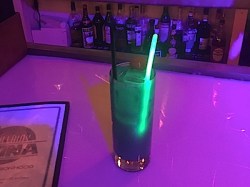 After such a harrowing experience, I needed some libations to calm my nerves. I sidled up to the bar and scanned the drink menu: Asteroid Field, The Mind Trick, Grabthar’s Hammer, as well as food items like the Falcon Burger. I couldn’t decide and so I asked the barkeep to name the most Star Warsy drink on the menu, and she recommended I try the “Wretched Blue Milk” a concoction made with rum, coco lopez, blue curacao, and pineapple juice, and served with a green glowstick. It tasted like a pina colada, which was 12 parsecs from wretched to my tastes.