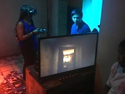 Reiko’s Fragments is Pixel Canvas Studios’ fully immersive VR experience in which I donned a Vive headset to explore the harrowing hallways and daunting rooms of a creepy house inhabited with puzzles and clues while evading the terror of those who inhabit the house with you. I used the handheld controller to collect the fragments of your lost memory to discover the truth behind the identities and story of the doll, ghost, and your own self. I was impressed with the number of items with which I could interact and engrossed by the story about the tragedy of what happens when the pieces of a family become fragmented, of the freedom we have to make choices, and of the consequences we cannot be freed from. Some of the jump scares were especially… scary. Joey Lee, the game director and studio founder, told me afterwards that what I played was just a tiny vertical slice of the game. The full game, which uses the Unreal engine and is displayed at a rate of 120 fps, is a full two hours long. You can find out more at Rei-ko’s Fragments.