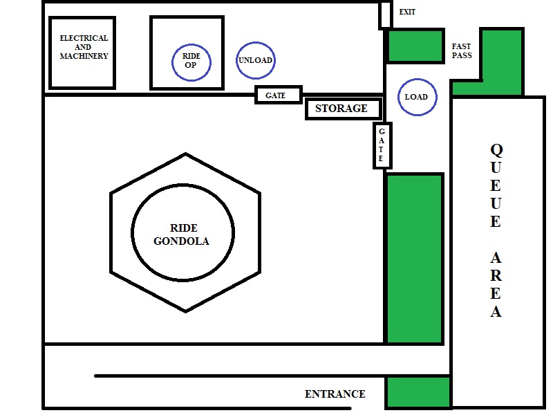 Operator positions, however, required many hours of training, followed by a much more extensive test that includes ride engineering, daily operation procedures, and ride evacuation procudures in the case of potential mechanical or evironmental problems. Those who pass the operator test are said to be “certified”. Cranazity’s attendendant postions are called Load and Unload, while its one operating position is called, unsurprisingly, Ride Operator.