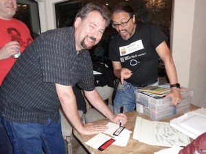 Looking over the Apple II hardware partygoers brought to be signed, with Softape co-founder Gary Koffler |
